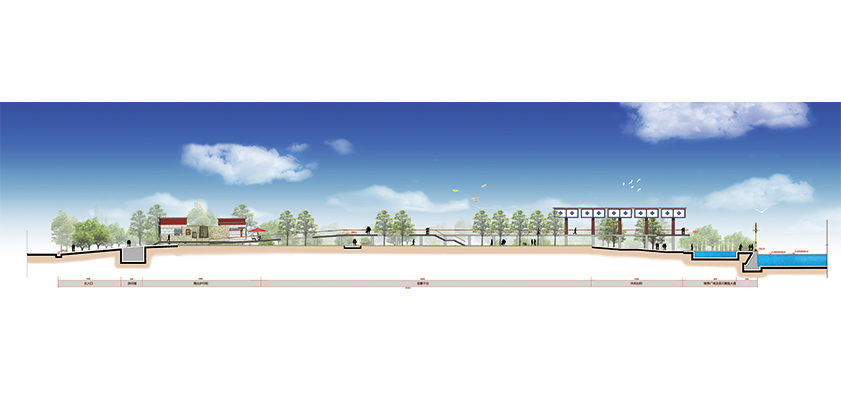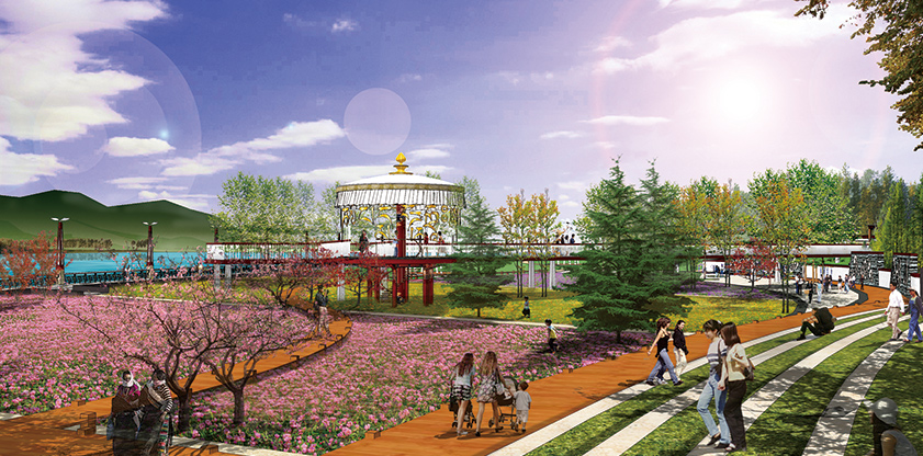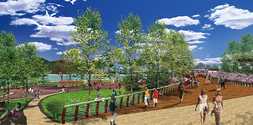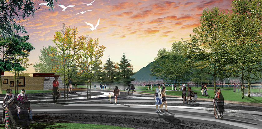 拉薩河景觀建設(shè)用地東起納金大橋,西至新拉貢公路大橋,位于拉薩河城區(qū)段百年大堤與子堤之間,總長度約20公里,總面積約400公頃。拉薩河景觀設(shè)計(jì)依據(jù)拉薩市總體規(guī)劃,遵循現(xiàn)有城市肌理,結(jié)合地形地貌,旨在將拉薩河打造為“多彩的哈達(dá),綠色的玉帶”,與布達(dá)拉宮遙相呼應(yīng),成為“高原明珠,雪域圣地”拉薩的綠色自然景觀。具有藏族特色的景點(diǎn)猶如五彩斑斕的寶石,散落在玉帶之中,科學(xué)有序的道路規(guī)劃將景點(diǎn)串聯(lián)起來,傳統(tǒng)文化與綠色在這里融合,不僅展示傳統(tǒng)藏區(qū)的風(fēng)貌,也體現(xiàn)未來高原圣地的綠色生態(tài)特色。