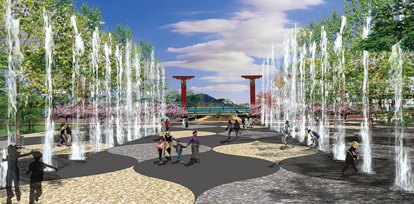 “藏家香巴”與布達(dá)拉宮、羅布林卡、德吉路等重要城市節(jié)點(diǎn)連接,直接展示著拉薩城的城市面貌與輝煌的人文歷史。整體景觀以開放的綠地為主,結(jié)合尺度適宜的場地,為開展節(jié)日慶典和逛林卡等傳統(tǒng)活動(dòng)提供條件。吉祥廣場濱水而建,為人們營造出靜謐的景觀氛圍。德吉路等城市道路向河岸延伸,并以此為依托設(shè)計(jì)有傳統(tǒng)商業(yè)步行街。在濱水區(qū)域設(shè)置噴泉廣場景觀大道,增加了人們水上活動(dòng)的可能性與安全性。