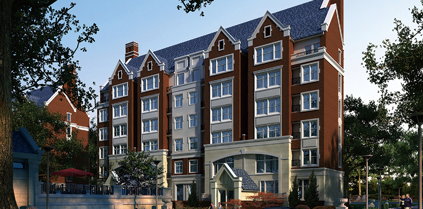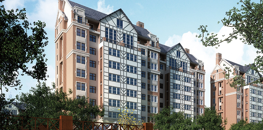 以英倫風格為基調(diào),保留了坡屋頂、門拱、煙囪、老虎窗、高大的窗等元素,同時做了簡化處理。既充分展示歐洲建筑文化格調(diào)和建筑文化,也不失現(xiàn)代感。